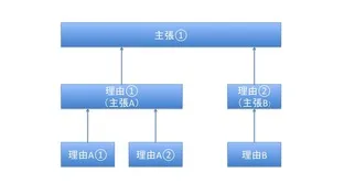 論理には2種類あるといえます。1つは水平論理、もう1つは垂直論理です。水平論理とは、ある主張を行うために、複数の根拠を添える構図を指します。例えば